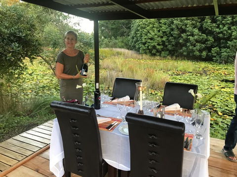 Join us for dinner in our open lounge-dining area overlooking the swimming pool, lily ponds and indigenous forest. Our freshly prepared dinner menus vary daily and depend on what’s available in season. We offer several choices with Meat or Fish options as well as a Vegetarian option. We can cater for Vegans on request.