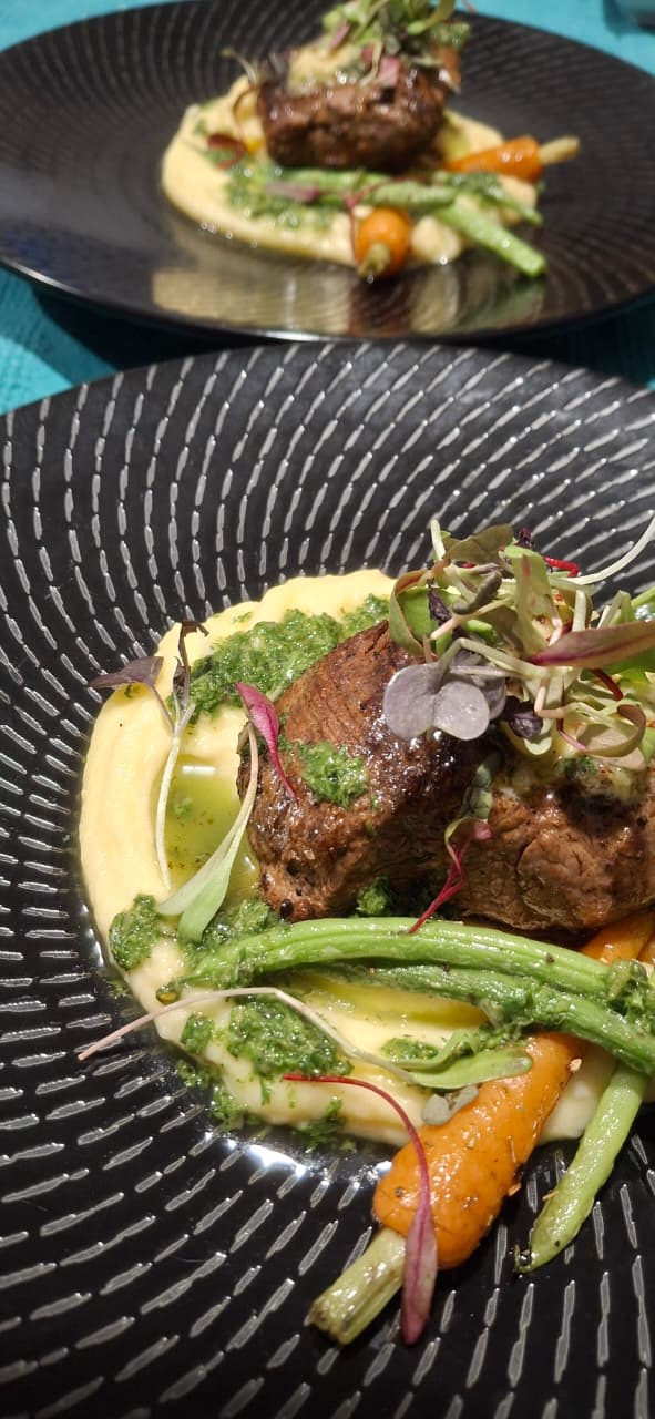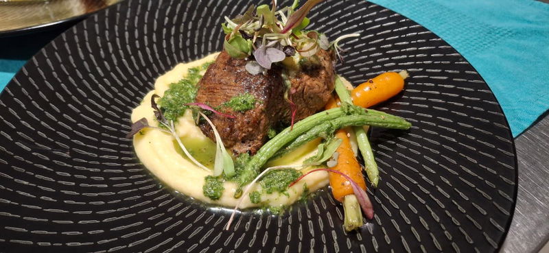 Beef Fillet with Potato Puree, Café de Paris Butter, Salsa Verde