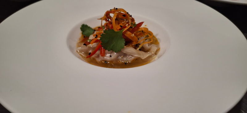 Grilled Patagonian Calamari, with Marinated Orange, Micro Greens