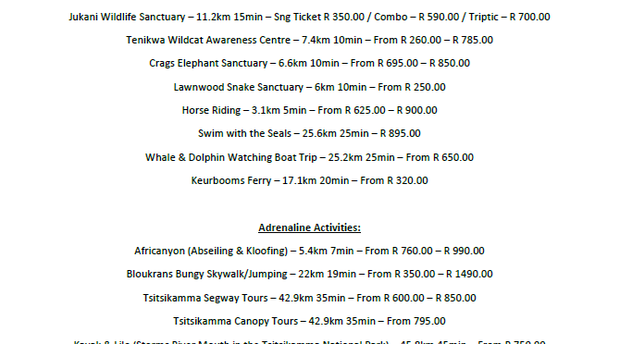 - Untouched Adventures: scuba diving, snorkelling, kayaking, kloofing